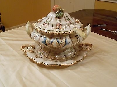 Capodimonte - Beautiful Porcelain Soup Tureen with Tray and Ladle