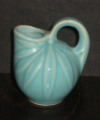 Vintage McCoy Or Shawnee Pottery Salesman Sample Pitcher Turquoise, U S A