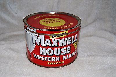 VINTAGE MAXWELL HOUSE WESTERN BLEND KEY TURN COFFEE CAN TIN WITH ORIGINAL LID