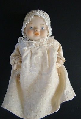 Antique Bisque Baby Doll- Blonde Hair Blue Eyes- 5 inches - Japan