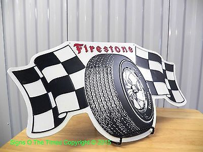 Firestone Tires Racing Flag Vintage Looking Embossed 3D Metal Decor Goodyear USA