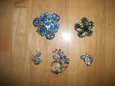 Vintage Antique Jewerly Broaches Sets Rhinestones
