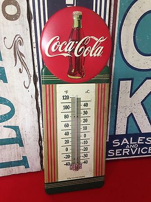 COCA COLA BUTTON 50s 60s STYLE THERMOMETER METAL SIGN,SODA SHOP,STORE,GARAGE.
