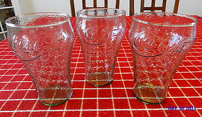 Title (ebay affiliate link): 3 VINTAGE EMBOSSED COCA-COLA (COKE) 32 oz. PEBBLED GREEN GLASS ~ MINT COND