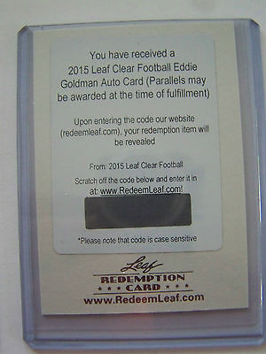 Title (ebay affiliate link): 2015 Leaf Clear Eddie Goldman RC Auto Redemption Parallel