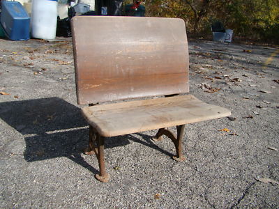 Title (ebay affiliate link): Antique Oak Folding School Desk Bench Seat Chair Iron