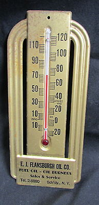 Title (ebay affiliate link): 1940's E.J. FLANSBURGH OIL CO. SCHENECTADY NY ART DECO METAL WALL THERMOMETER