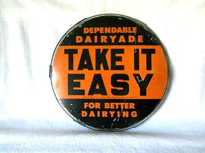 Vintage Dairyade For Better Dairying Sign "Take It Easy"