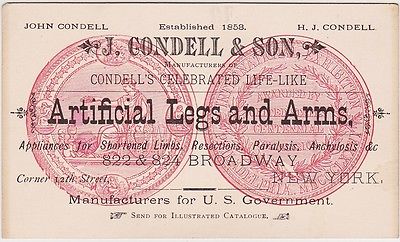 Artifical Legs & Arms 1876 Centennial Trade Card