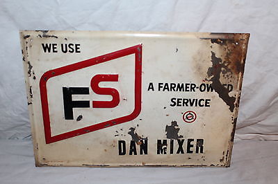 Vintage 1960's FS Farm Service Corn Seed & Feed 14" Embossed Metal Sign