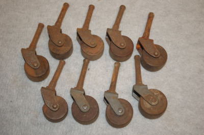 Title (ebay affiliate link): 9 Antique Wood Roller Furniture Caster Wheels w/Stems