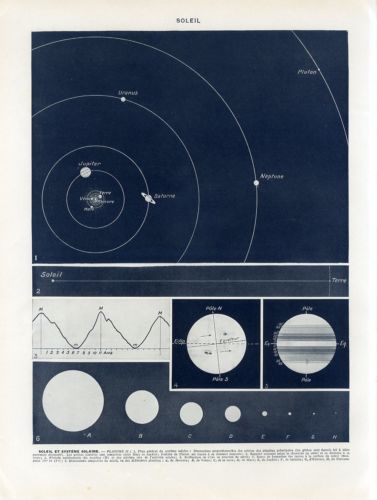 Title (ebay affiliate link): 1910s SUN SOLAR SYSTEM PLANETS ASTRONOMY Antique Litho Print Larousse