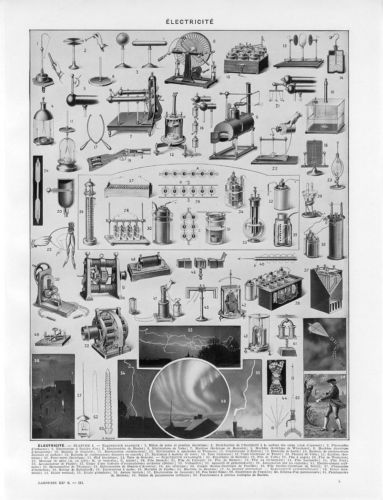 Title (ebay affiliate link): 1910s OLD ELECTRICITY APPARATUS LIGHTNING TELEPHONE Antique Litho Print Larousse