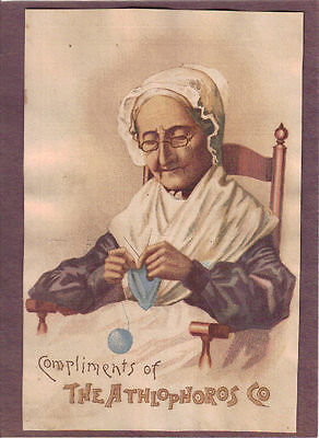 Granny Knits Quack Medicine Athlophoros Co Trade Card w 1886 Calendar
