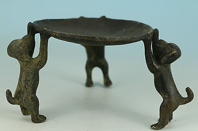 Lovely Chinese Old Bronze Collection Handwork Carved Cat Statue Oil Lamp