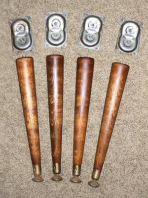 Set of 4 Vntg Mid Century Danish Modern Furniture Legs Feet 12 Inches w/Brackets