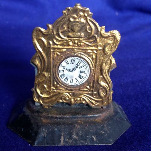 Title (ebay affiliate link): ANTIQUE DOLLHOUSE MINIATURE EMBOSSED METAL VICTORIAN CLOCK FURNITURE 2