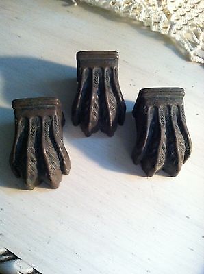 3 Metal Antique Vtg Duncan Phyfe Style Table Leg Lions Claw Paw Feet End Caps