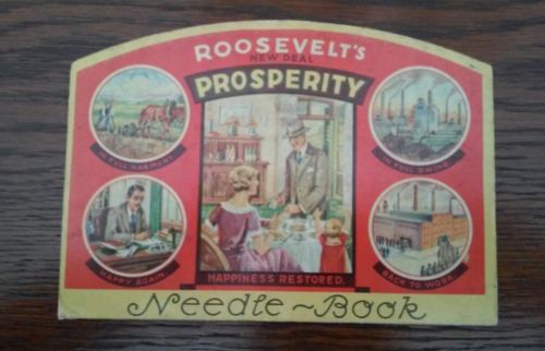 Title (ebay affiliate link): FRANKLIN ROOSEVELT NEW DEAL PROSPERITY UNUSUAL POLITICAL NEEDLE BOOK