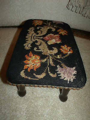 Vintage Wooden Upholstered Handmade Hand Needlepoint Seat Footstool Bench