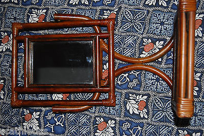 Wood Wicker Table Top Vanity Dresser Tilting Mirror Attaching Stand Tropical