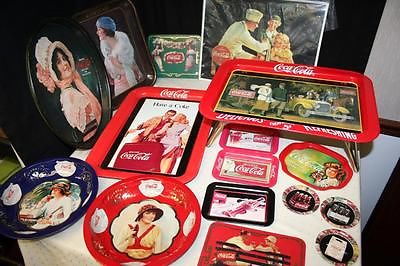 Title (ebay affiliate link): COCA-COLA TIN 10 TRAYS, 3 SIGNS & 4 COASTERS LOT SOME VINTAGE COLLECTIBLES NR