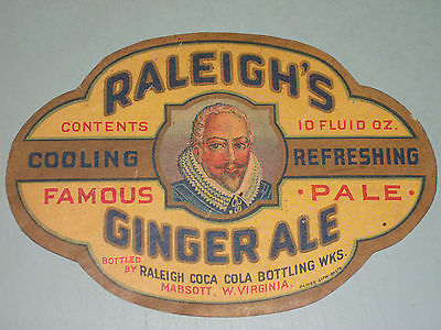 Title (ebay affiliate link): Raleigh's Ginger Ale label, Raleigh Coca-Cola Co., Mabsott, W. VA. Prohibition