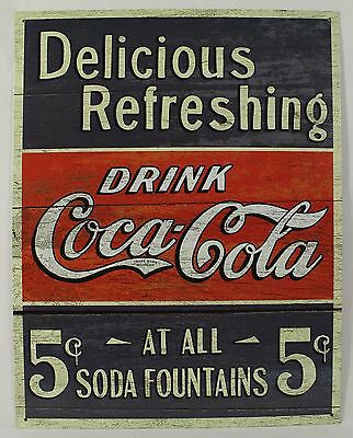 Title (ebay affiliate link): DRINK COCA-COLA 5 CENT SODA FOUNTAINS METAL SIGN Coke Soda NEW Vintage Repro Tin
