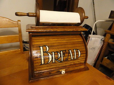 Title (ebay affiliate link): ANTIQUE VINTAGE UNIQUE WOOD ROLL TOP BREAD BOX PAPER TOWEL HOLDER EX CONDITION!