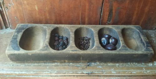 Antique wooden treen handcarved table top spice tray fantastic patina AAFA