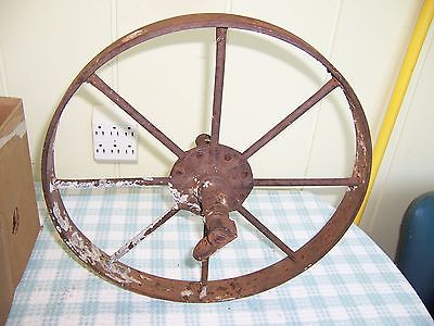 Antique Primitive 16" Iron Wheel Barrow Barrel 8 Spoke Wheel Country Decor L3