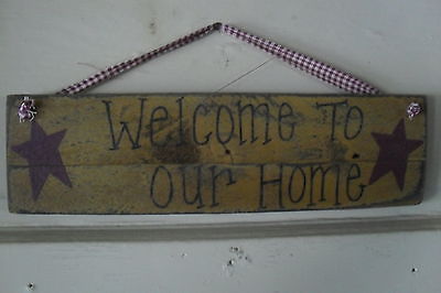 Primitive Country Handmade Sign (Welcome To Our Home) Mustard Yellow