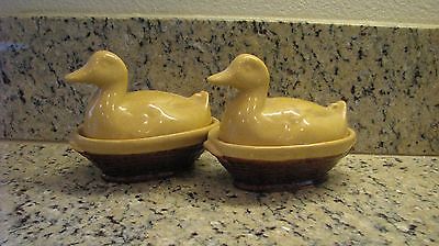 Pair Vintage Yellow Ware Miniature Duck Lidded Dish! Unusual!!!
