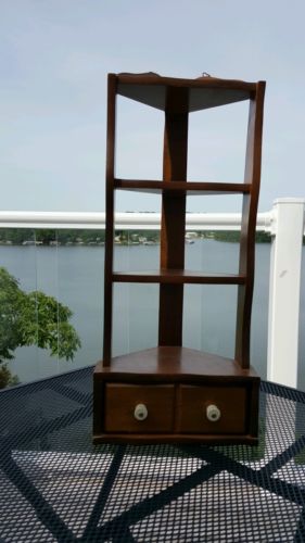 Title (ebay affiliate link): VINTAGE SOLID WOOD 3 TIER CORNER WALL SHELF WITH DOOR/GOOD CONDITION