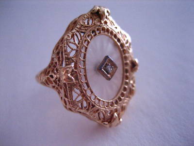 Title (ebay affiliate link): Antique Style 14K - Camphor Glass Filigree Ring w diam