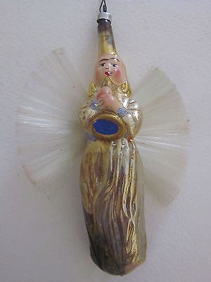 Vintage Christmas Tree Ornament Hand Blown Mercury Glass Angel w/ Wings AS IS