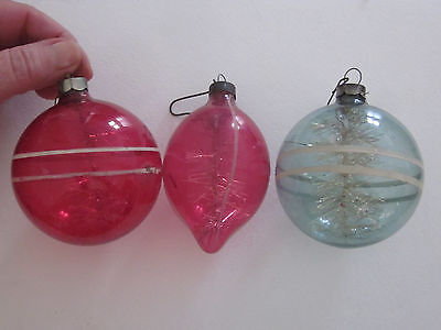 Lot of 3 Vintage Christmas Tree Ornaments Clear Glass w/ Tinsel inside