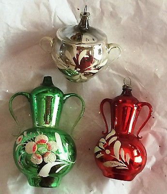 Title (ebay affiliate link): Three vtg/antique glass Christmas tree ornaments vases with handles