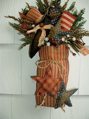 PRIM RED TICKING SACK~UNCLE SAM CROW~AMERICAN FLAG~STARS~AMERICANA