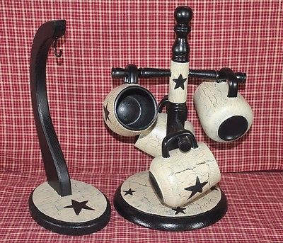 Title (ebay affiliate link): Primitive Crackle 4 Cups W/ Holder, Banana Holder Country Decor