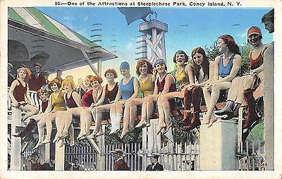 Coney Island New York bathing beauties Steeplechase Park antique pc (Y9467)