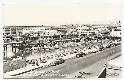 SAN FRANCISCO, CA. FISHERMENS WHARF & 1930s CARS CAL. REAL PHOTO POSTCARD RPPC