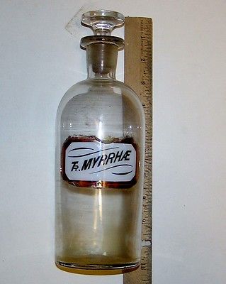 Title (ebay affiliate link): Tr.MYRRHHAE, Pharmacy, bottle,gold trim label under glas