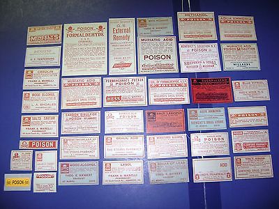 38=OLD ALL POISON PHARMACY APOTHECARY MEDICINE BOTTLE LABELS= NICE