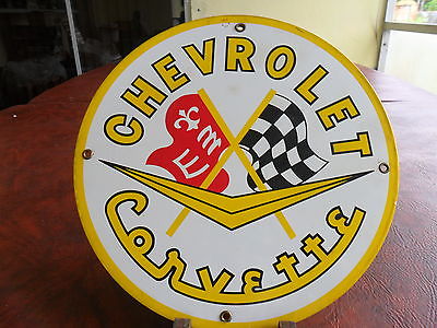 CHEVROLET CORVETTE ADVERTISING SIGN 11 1/4 " PORCELAIN NR-MT