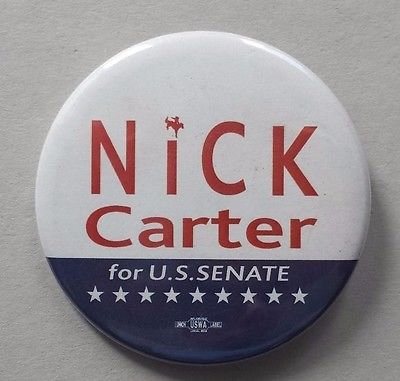 Title (ebay affiliate link): Nick Carter for U.S. Senate Wyoming 2008 Button Pin Democrat