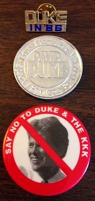 Title (ebay affiliate link): Three David Duke Political Items Including Pinbacks and "Coin."