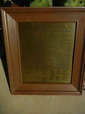 Vintage Collectible Framed DECLARATION OF INDEPENDENCE - Engraved Copper Plate