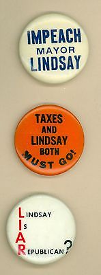 3 Vintage 1969 New York Mayor Lindsay anti-Lindsay Political Pinback Buttons