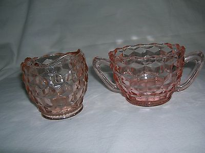 Vintage Jeanette Pink Depression Glass Creamer & Sugar Bowl, Cubist Pattern
